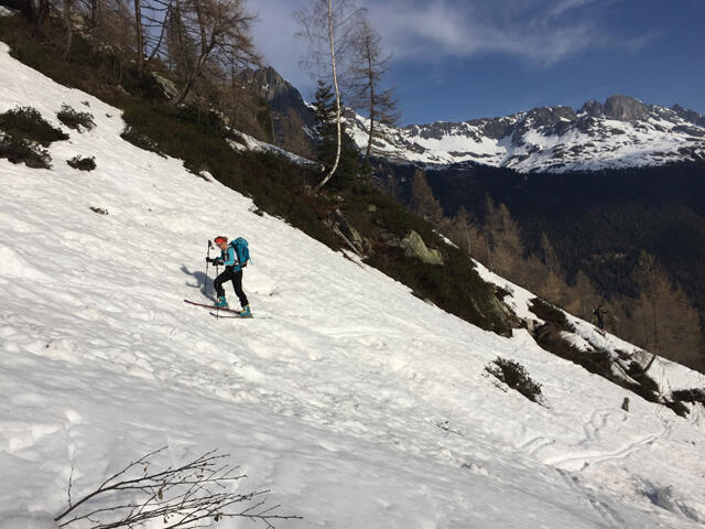 A chacun sa technique pour le dernier raidillon, avec ou sans couteaux, ou les skis sur le dos